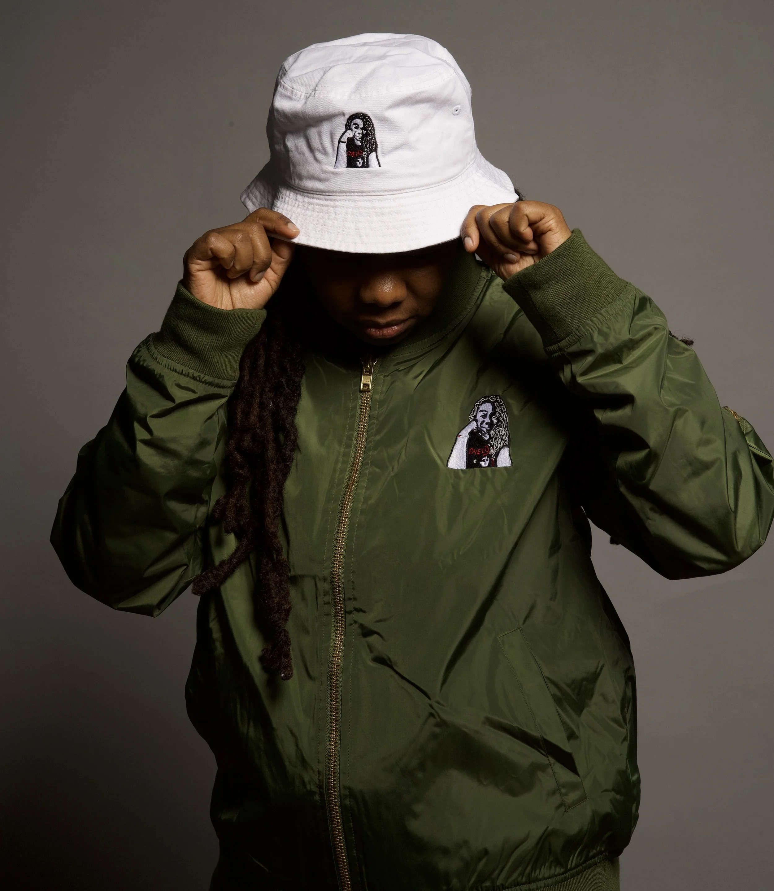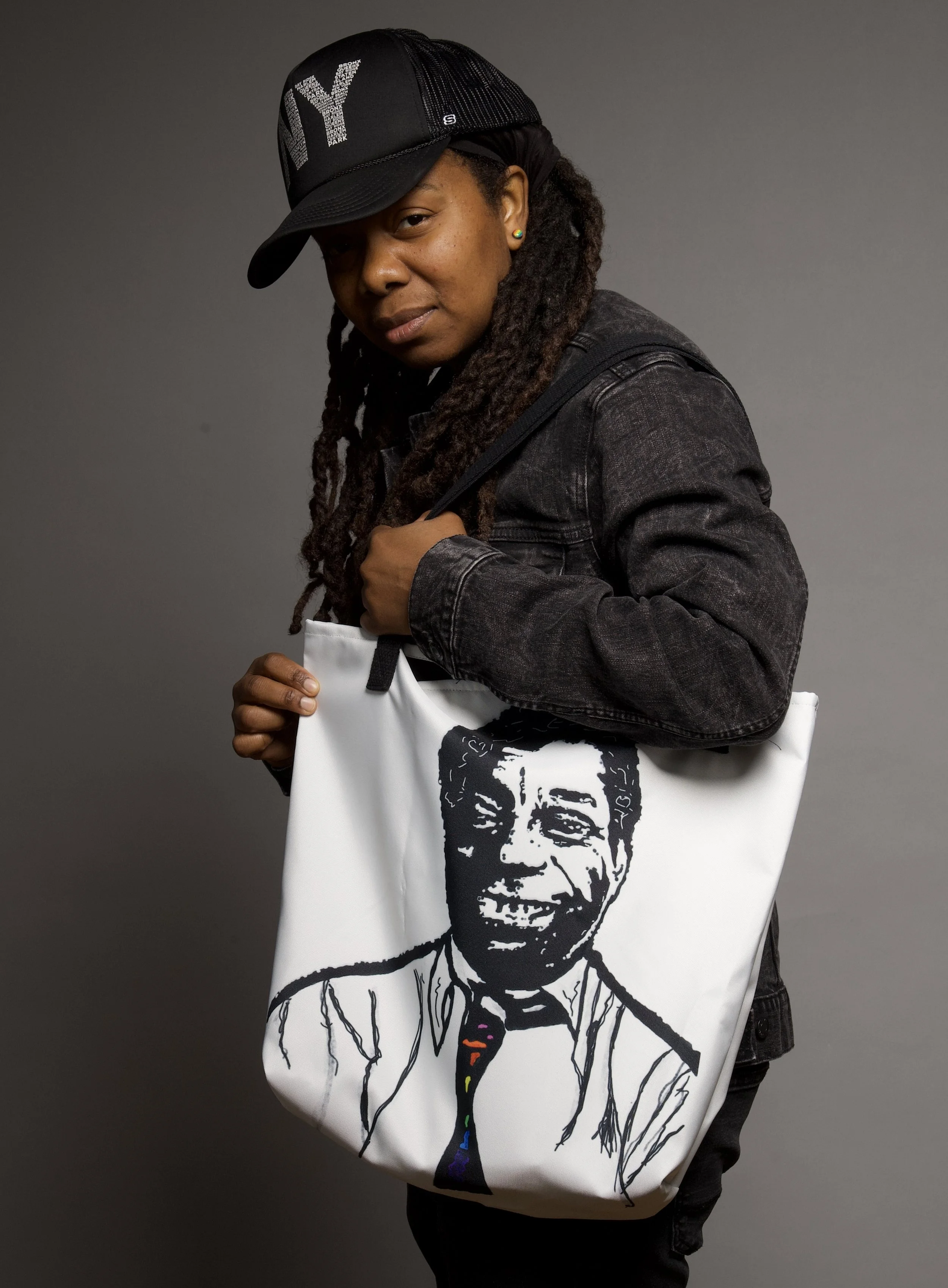 Wearable art designs by Gloria Zapata, modeled by the artist. Photography by The Bronxer. Custom portrait designs for personalized products are also available.